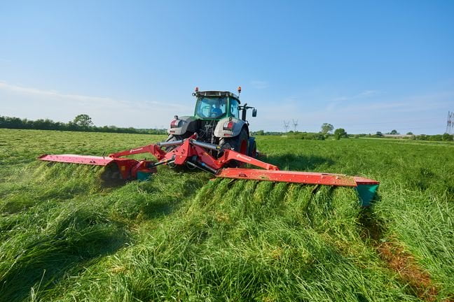 Kvernelandin 4336CT, 3,6m leveä, kahden puolen niittävä niittomurskain on malliston suosituin hinattava malli. Koneet ovat saatavina myös vain oikealta niittävinä versioina.